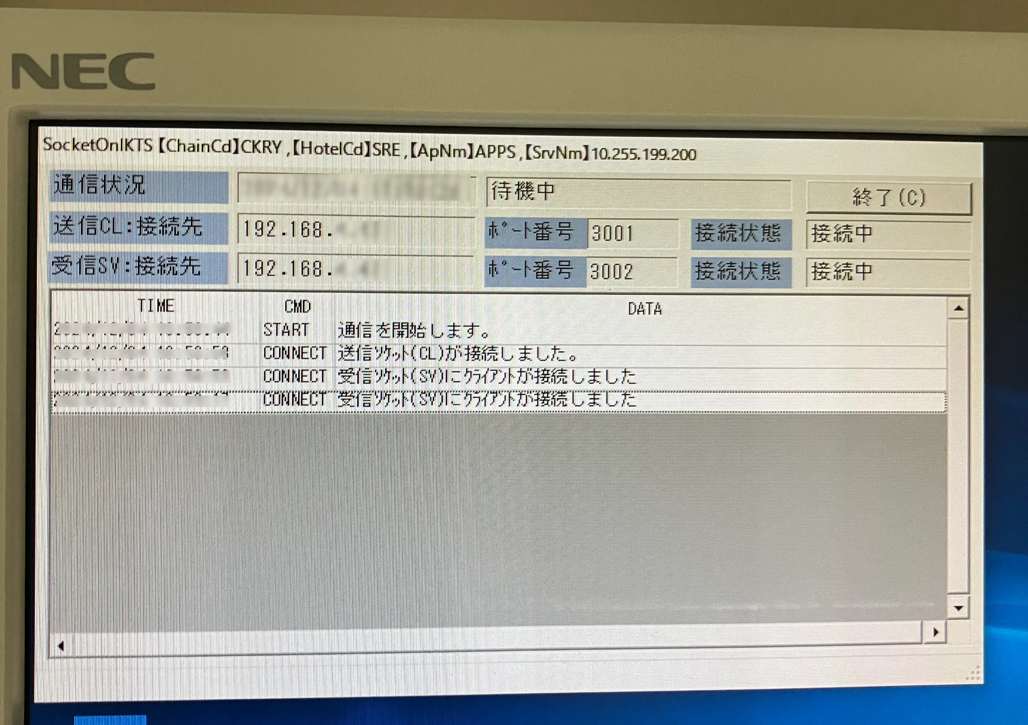つなぐくんPCにて、相乗りや遠隔操作ソフトとのポートバッティング確認