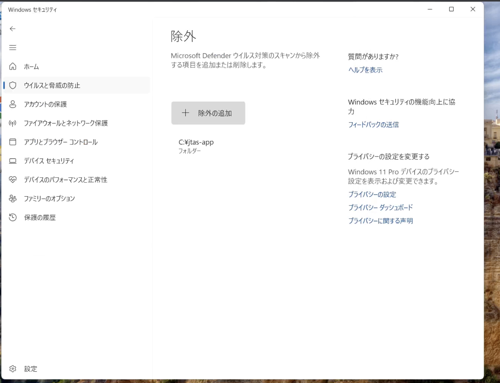 ウイルス対策ソフトを導入している場合は、Jtas-appフォルダをスキャンから除外設定を行います。
